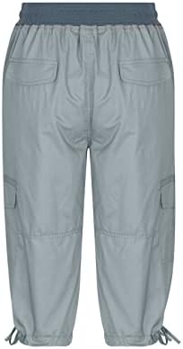 Women’s Fashion Lightweight Woven Drawstring Cargo Capri Pant with Pockets Activewear